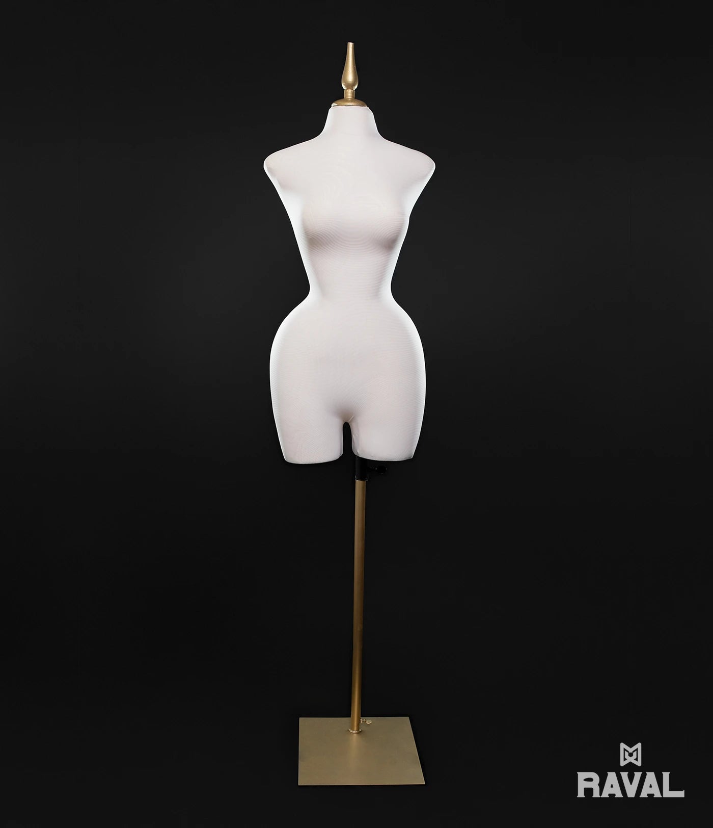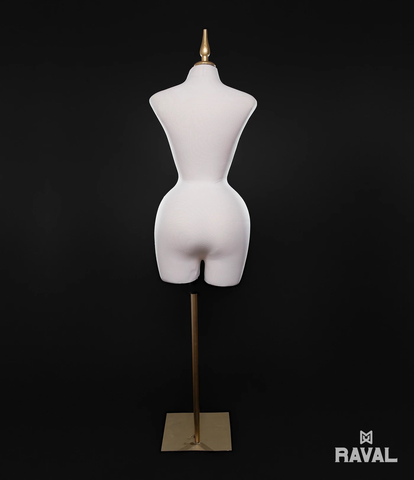 Este modelo forma parte de la colección Boutique Live de Raval y está diseñado para realzar figuras femeninas con curvas naturales tipo buchón. Su estructura definida, combinada con un acabado textil y base dorada, lo convierten en una pieza ideal para showrooms premium, vitrinas, boutiques de moda o exhibiciones de alta gama.